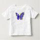 Borboleta de flores cinza, azul, safira, espumante com asa decorada com flores preciosos azuis com folhas de ouro sobre fundo branco.