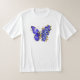 Borboleta de flores cinza, azul, safira, espumante com asa decorada com flores preciosos azuis com folhas de ouro sobre fundo branco.