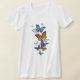 Borboleta azul-clara e voadora morfo e borboleta-monarca laranja num fundo branco. Morpho. Borboleta monarca. Design com borboletas.