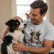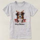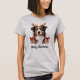 "This beautiful illustration features a proud portrait of a Border Collie, known for its intelligence and striking tri-color markings. The dog is wearing festive reindeer antlers adorned with small golden bells. Two charmingly wrapped Christmas gifts sit on either side, tied with red and pink ribbons. This high-quality graphic is ideal for personalized holiday gifts, pet owner apparel, Christmas cards, magnets, or any product celebrating this magnificent dog breed."
