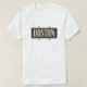 A formal, heritage-modern streetwear composition built on structure and restraint. “BOSTON” is set in condensed serif typography, anchored within a rigid grid system and reinforced by strong vertical divisions. Layered fields in black, deep navy, and aged parchment establish a sense of permanence and order, while a lightly worn print texture softens the precision without compromising clarity. The result is serious, architectural, and quietly authoritative—an elevated city statement designed with no symbols, icons, or excess.