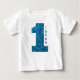 Bebês Boys Primeiro Aniversário T-shirt. Design apresenta o "one" do bebê azul na textura de lágrima da moda. Perfeito para a primeira comemoração de aniversário. Adicione o nome dos seus rapazes e faça dele seu.