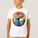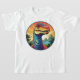 Adicione um pouco de rugem ao seu guarda-roupa com esta camiseta vibrante com um design de dinossauro corajoso e colorido com uma vibração vintage em quadrinhos. Esta camisa gráfica pré-histórica ao estilo cartoon certamente atrai atenção instantaneamente e é perfeita para crianças ou qualquer pessoa que ame história natural!