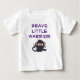Uma tenda para um menino ou menina com as palavras personalizadas "Guerreiro Pequeno Corajoso" em uma fonte moderna, na moda, e um desenho engraçado e fofo de um bebê macaco ninja. Eu o desenhei especificamente para um lutador feroz que lutou depois do nascimento com alguma condição de saúde.