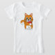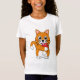 Camiseta Branca De Gato Branco, Comendo Maçã Vermelha