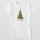 Esta camisa de Natal apresenta uma árvore de Natal festiva e Feliz Natal em vermelho debaixo. Vista esta tenda à escola, festas e outros eventos de férias.