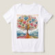 Bela camiseta de senhoras com árvore colorida de corações.