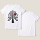 A design de camisa do Halloween que apresenta os nossos divertidos ossos de costelas de esqueleto branco para criar a impressão de um raio-x dos ossos de esqueleto. Um belo coração vermelho é adicionado atrás dos ossos do esqueleto para criar um estilo bonito. Toda a trabalho de arte contida neste esqueleto de camiseta do coração do osso da costela do halloween é desenhada à mão pela Moodthology.