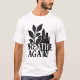 “Breathe Again” weaves organic shapes with stark city lines. Solid black and white give an impactful look, and the design’s clear background is ideal for any dark shirt.