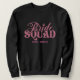 Diseño con Frase "Bride Squad", sencilla y elegante, cita de Sudaderas de arte con tipografía moderna brillante de color rosa en un estilo moderno. El lema, nombre y rol se puede personalizar fácilmente con los nombres de tu fiesta nupcial, No lo piense y adquiera las suyas ahora.