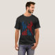A camiseta Muay Thai Flying Knee Fighters exibe um design impressionante com dois combatentes Muay Thai virados uns contra os outros, um em azul vibrante e o outro em vermelho apaixonado. São capturados em ação de médio, demonstrando a impressionante técnica do joelho voador ou do joelho saltante. Abaixo deles, as palavras "Muay Thai" são elegantemente dispostas em forma de triângulo, enfeitadas em tons vermelho e azul complementares, simbolizando força e unidade.