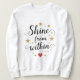 Deixe a sua luz interior brilhar com este design empoderador que te lembra de brilhar de dentro. Apresentando uma citação manuscrita com estereótipos de ouro mole e um coração vermelho comovente, é perfeito para aqueles que abraçam o amor próprio, o crescimento espiritual e a positividade. Seja num diário, caneca ou saco de tote, esta peça encoraja a energia radiante e a expressão lúcida.