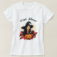 A ilustração apresenta uma bruxa bonitinha com um sorriso amigável, vestida com um chapéu pontiagudo clássico e um roupão fluente.