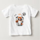 Camiseta ou bodysuit adorável para seu pequeno bicho-papão apresenta um fantasma fofo vestindo óculos de sol laranja, um laço laranja no cabelo e sua bolsa laranja. Ela está carregando sua abóbora e há muitas estrelas cintilantes e morcegos sob uma lua cinza assustadora. Está mostrado com um nome, mas é personalizável para que possa alterá-lo para qualquer outra coisa que desejar, como Travessura ou Gostosuras ou Feliz Outono. Também disponível como bodysuit.