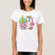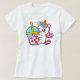 Kawaii arco-íris unicórnio abraçando chá de bolhas rosa.