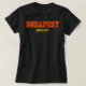 Bold Budapest emblem in yellowfont varsity style, highlighting the Hungarian capital with athletic typography. Vibrant retro collegiate vibe for city-themed apparel and travel nostalgia.
