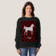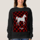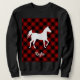 Uma bela e ousada silhueta de um cavalo sobre um fundo de xadrez de búfalo vermelha. Seria um presente adorável para qualquer amante de cavalos.