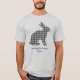 Silhouette de um cheque de búfalo preto e branco, coelho da Páscoa xadrez com título e nome em texto azul escuro. Este estilo de camiseta Básica Masculina vem em Adultos S para Adultos 4XL e muitas cores. Altere ou remova facilmente o texto usando o Modelo fornecido. Consulte "Sobre este produto" ao lado para obter mais informações e cuidados.