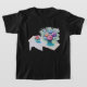 Flores vibrantes em tons de rosa, roxo, laranja e azul são representadas em estilo de desenho solto, com um grande buquê em um vaso azul e um pote menor em uma mesa claramente marcada. As braçadas são expressivas e coloridas, transmitindo um senso de vida e espontaneidade artística.