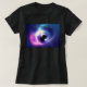 Uma imagem fractal multicolorida que sugere a queda de gases aquecidos em um buraco negro, sobreposta a um fundo estrelado. Adicione seu próprio texto.