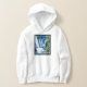 Uma pintura digital de uma cascata encontrada na Califórnia, Burney Falls. Uma borboleta marrom e branca está em um galho que se estende através da vista cênica. Imagem Copyright ©2023 Kimberly J Tilley.
