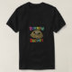 A t-shirt apresenta o texto "Burrow Buddies" numa paleta de cores divertida e incomparável. Cada letra se rompe com um tom vibrante diferente, criando um design alegre e atraente.