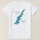 A pair of loons on the lake with a sunset in behind the and cattails on either side of them. On the back is a map of Butterfield Lake Redwood N.Y.