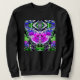 Camisola em uma borboleta violeta e roxa grande sobre fundo de um ornamentado, medalhão arabesco, em lavanda, verde, preto e branco
