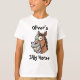 Esta camiseta personalizada para crianças apresenta a cabeça de um cavalo marrom de desenho animado humorístico com olhos arregalados e um enorme sorriso com dentes à mostra.