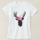 Uma t-shirt com uma cabeça de cervo preto feita com linha geométrica e vestindo uma coroa floral rosa. Design russa e de tendências.