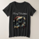 Camiseta Cabelo Comprido Negro Papai noel Chapéu de Natal