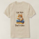 Este design lúgubre apresenta um gato relaxado e giro deitado sobre uma pilha de roupas dobradas, cercado por um borrão de cor. A frase "Cabelo de Gato, Não se Importa" captura a atitude descuidada dos donos de gatos que abraçam o pelo com um sorriso. A frase pode ser personalizada.
