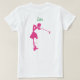 A dama de golfe em sua vida vai adorar fazer isso vestir essa camiseta de golfe. Tem a frase 'Cabelo de Golfe não se importa' na tipografia de guião verde e rosa. O 'o' na palavra golfe é uma bola de golfe em teed up. Há também imagens de corações e um putter. O verso tem um nome na tipografia de script verde que pode ser editado. Abaixo está uma imagem cor-de-rosa de uma golfista que acabou de balançar uma bola de golfe. Todas as cores neste design são editáveis.