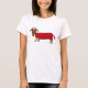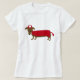 Doggy do diabo - o Dachshund vestiu-se acima em um diabo que o traje para o t-shirt do Dia das Bruxas o personaliza! Personalize na tela com seu texto!