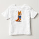 Cachorro animado, estilo cartoon, com um casaco cor de laranja fofo. Este cachorro tem olhos brilhantes e expressivos e um sorriso largo, mostrando seu comportamento amigável. Está vestindo uma bandana azul adornada com estrelas brancas ao redor do pescoço, acrescentando um toque lúdico. O fundo é branco claro, enfatizando as cores vibrantes do cão. No geral, a imagem transmite uma sensação de calor e charme.