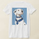 Ilustração estilizada de um cão Dalmático vestindo um colar azul contra um fundo azul comum, destacando sua aparência distinta e comportamento amigável.