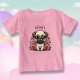 Um desenho animado de chibi acolhedor cachorrinho de cachorrinho sentado em flores cor-de-rosa com um nome que você pode adicionar na área de personalização.
