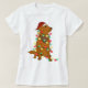 Um design de férias de inverno engraçado de um cachorro fofo enfiado em luzes de Natal.