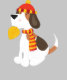 Design de cachorro bonito, divertido e adorável com cachecol, chapéu e folhas de outono. Presente moderno e moderno, perfeito para o amante do cão em sua vida.