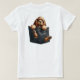 Um cachorro coquetel num bolso, a coisa mais bonita. O nome da raça está na frente da camiseta, mas eu adicionei a imagem ao fundo sem nenhum texto que a faça parecer com ela no bolso.