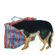Camiseta Cachorro preto e bronzeado com cabeça no saco de c