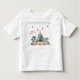 Esta camiseta adorável tem uma árvore de Natal decorada e apresenta um cachorrinho menino e uma cachorrinha menina sentados ao lado dela. O cachorrinho menino está usando um chapéu alto e a cachorrinha menina está usando um laço vermelho no cabelo. Há presentes ao redor deles e uma linda guirlanda de estrelas pendurada acima.