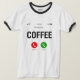 Uma camiseta divertida que mostra seu amor por café de uma maneira moderna — como se estivesse chamando você para sua dose diária.