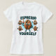 Faça uma declaração com o seu guarda-roupa e a sua preferência de café com a T-Shirt 'Espresso Yself'! Esta camisa única apresenta os mesmos grãos animados e adoráveis de café da nossa caneca popular, cada um exibindo suas personalidades peculiares. O feijão central apresenta alegremente um espresso a vapor, simbolizando a alegria da autoexpressão através do seu java favorito. Esta camiseta é uma mistura de conforto e estilo, feita de material macio e de alta qualidade, garantindo que é uma alegria vestir qualquer ocasião casual ou reunião de café. Não é apenas uma roupa; é um começo de conversa para entusiastas do expresso e um presente perfeito para o consumidor de café em sua vida.