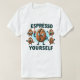 Faça uma declaração com o seu guarda-roupa e a sua preferência de café com a T-Shirt 'Espresso Yself'! Esta camisa única apresenta os mesmos grãos animados e adoráveis de café da nossa caneca popular, cada um exibindo suas personalidades peculiares. O feijão central apresenta alegremente um espresso a vapor, simbolizando a alegria da autoexpressão através do seu java favorito. Esta camiseta é uma mistura de conforto e estilo, feita de material macio e de alta qualidade, garantindo que é uma alegria vestir qualquer ocasião casual ou reunião de café. Não é apenas uma roupa; é um começo de conversa para entusiastas do expresso e um presente perfeito para o consumidor de café em sua vida.