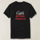 O texto branco estilizado e vermelho desta camisa diz "CAFÉ e GERMAN SHEPHERD". Uma xícara de café branca e uma pata vermelha completam a design.