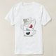 Um T-shorts jovem moderno, disponível em branco ou preto, caracterizado no seu meio por desenhar xícaras de café elegantes, espalhados por bolhas de espuma em forma de coração ou círculos, e acima de cada xícara de gato divertido sentado ou olhando curiosamente, com detalhes agradáveis de gatos como olhos brilhantes e orelhas mostradas. A design dá uma sensação de calor e conforto e reflete o amor do café e dos gatos juntos em um estilo alegre e atraente.
