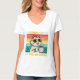 Vibes do café retrô - Camiseta feminina do café engraçada é o design perfeito para quem vive com sol, boas vibrações e muito café! Apresentando um gato bonito com óculos de sol e uma caneca de vapor, este trabalho de arte retrotilado traz vibrações de praia dos anos 70 com uma reviravolta moderna. Ideal para amantes de café, entusiastas de gatos, e aqueles que trabalham com cafeína e frio.
