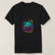A design de camiseta apresenta uma imagem nostálgica e vibrante: uma caixa de boom enfeitada com cores vibrantes de neon, cercada por uma nuvem de notas de música flutuantes. Este design evoca a energia e o entusiasmo da cena musical dos anos 80 e 90, apelando para aqueles que apreciam a estética retrô e o amor pela música.