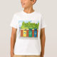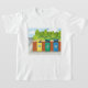 Uma fila de caixas reciclagens coloridas. Esta design parece realmente eficaz nesta camiseta